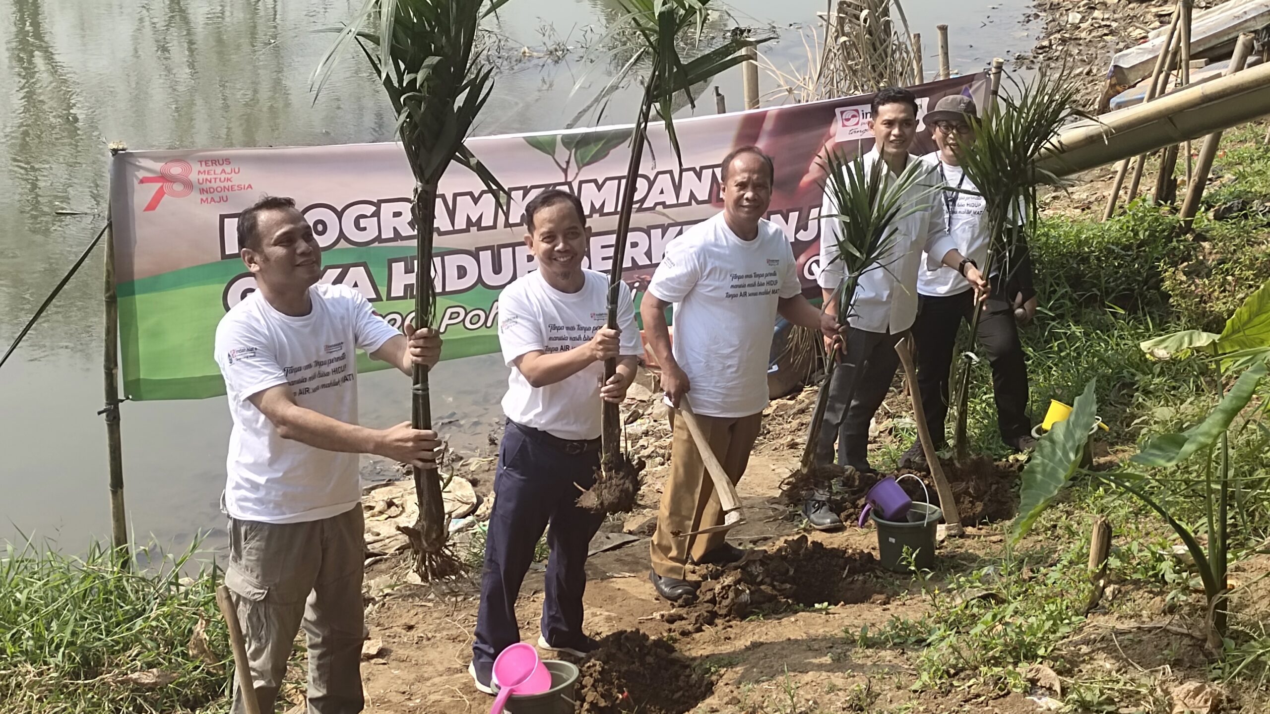 HARIANRAKYAT.ID, KABUPATEN TANGERANG- Bentuk kepedulian terhadap lingkungan, Bank Sampah Sungai Cisadane (Banksasuci) bersama unit usaha Asia Pulp & Paper (APP) Sinar Mas, PT Indah Kiat Pulp & Paper Tbk (IKPP) Tangerang melakukan penanaman pohon di sepanjang Sungai Cisadane, 15 Agustus 2023.