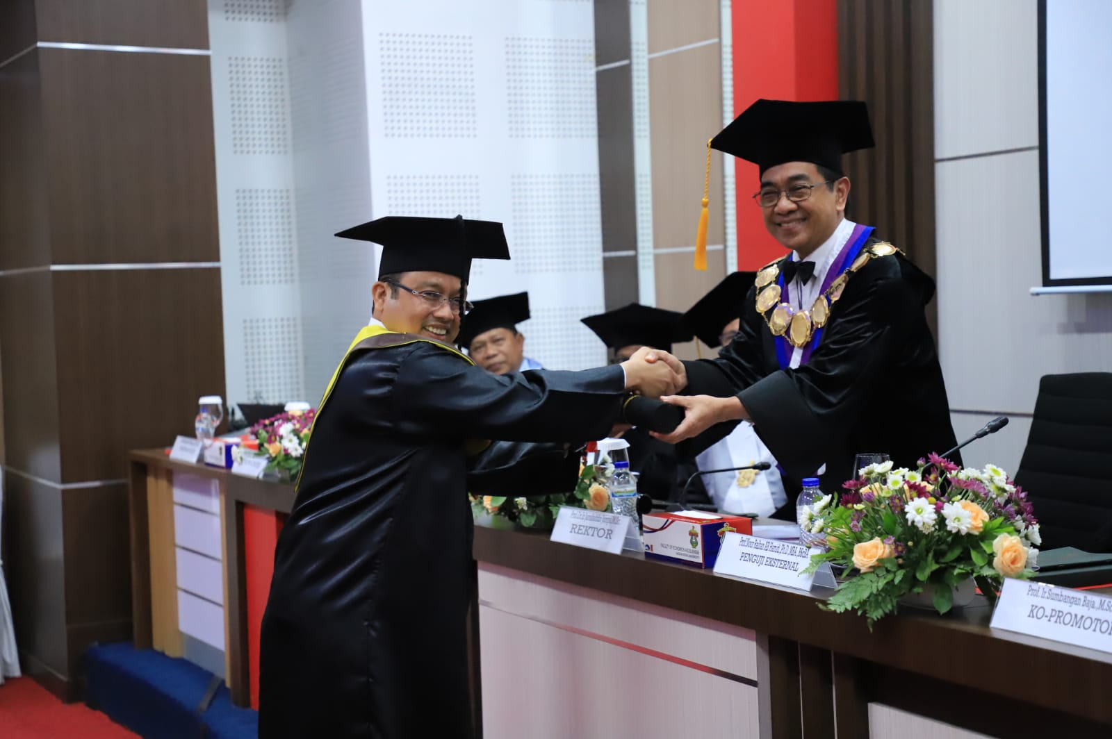 Sidang diketuai langsung oleh Rektor Unhas Prof. Dr. Ir. Jamaluddin Jompa, M.Sc. Bertindak selaku promotor adalah Prof Dr Abdul Rahma Kadir, SE, MSI dengan Co Promotor yakni Prof Ir Sumbangan Baja M. Phil, Ph. D serta Prof Dr Muhammad Yunus Amar, SE. MT. Dalam kesempatan ini, pihak Unhas turut menghadirkan penguji eksternal dari UNITAR International University Malaysia yakni Prof Dr Noor Raihan Ab Hamid BSC.