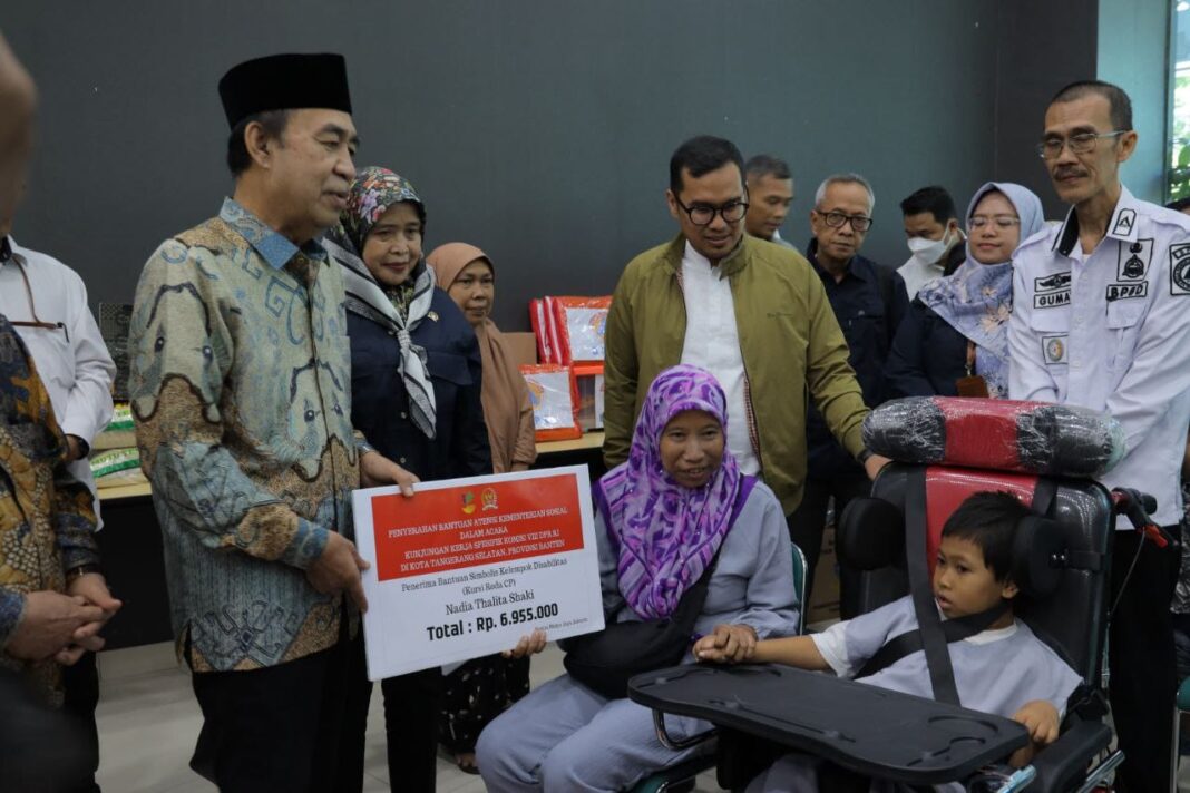 HARIANRAKYAT.ID, KOTA TANGSEL- Wakil Wali Kota Tangerang Selatan Pilar Saga Ichsan bersama Komisi VIII Dewan Perwakilan Rakyat (DPR) Republik Indonesia (RI), Kementerian Sosial (Kemensos), dan Badan Nasional Penanggulangan Bencana (BNPB) menyerahkan bantuan sosial hingga dana siap pakai maupun dukungan logistik dan peralatan untuk penanganan darurat di Tangerang Selatan kepada masyarakat.