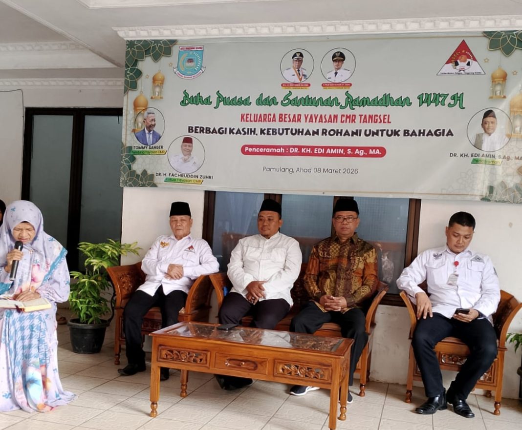 HARIANRAKYAT.ID, TANGSEL – Keluarga besar Yayasan CMR Tangerang Selatan mengadaka buka puasa bersama dan santunan Ramadan 1447 Hijriah/2026. Santunan menyasar bagi masyarakat yang membutuhkan, di Sekretariat CMR, Perumahan Sinar Pamulang Permai, Pamulang Barat, Kota Tangsel, Minggu (8/3/2026).