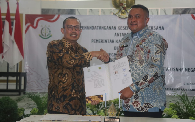 Penandatangan dilakukan oleh Bupati Bogor, Rudy Susmanto dan Kepala Kejaksaan Negeri Kabupaten Bogor, Irwanuddin Tadjuddin, di Ruang Serbaguna I, Sekretariat Daerah, Cibinong, Selasa (22/4/2025).