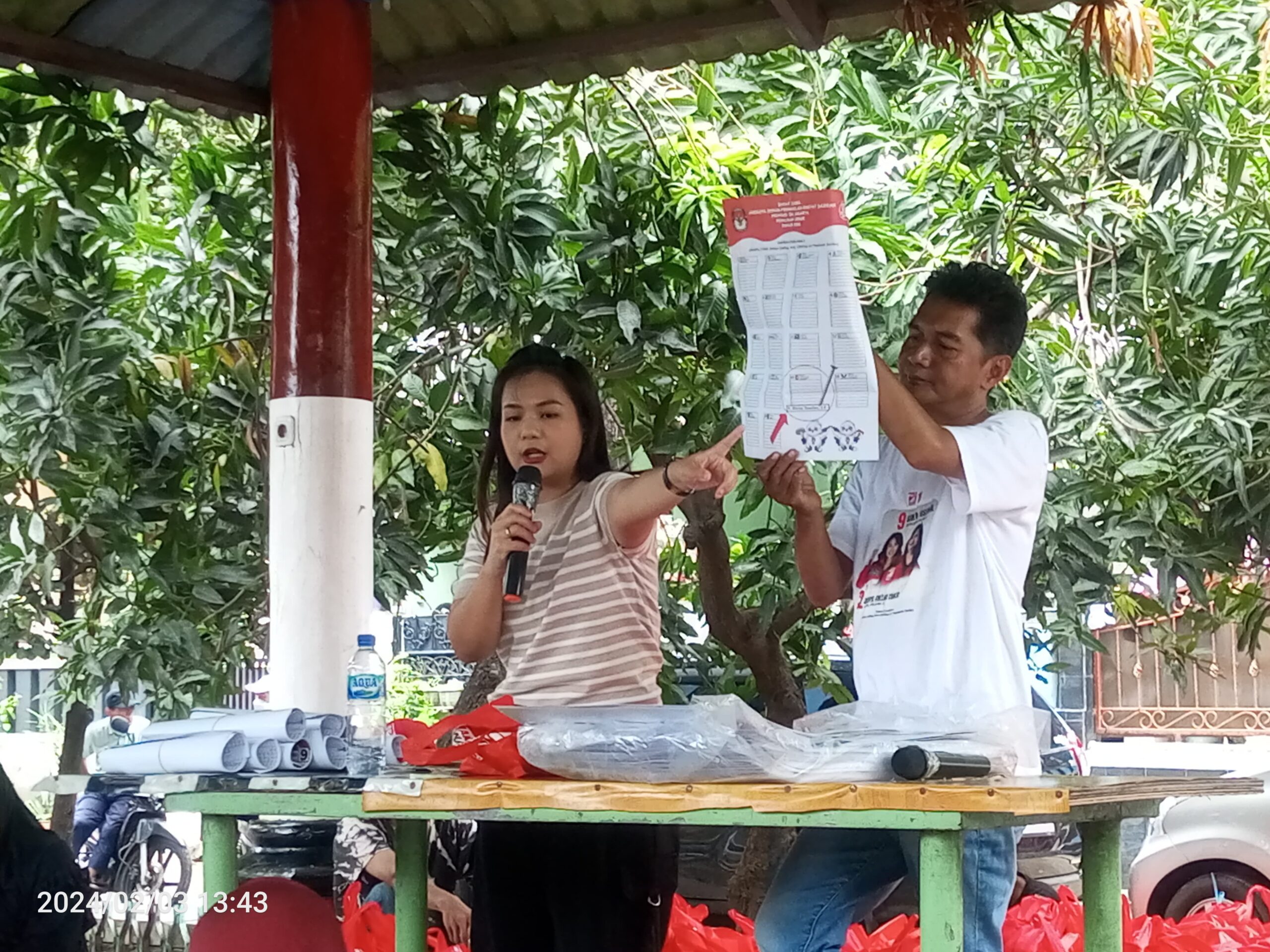 HARIANRAKYAT.ID, JAKARTA – Calon Legislatif (caleg) DKI Jakarta Dapil 2 Shinta Yosefina dari Partai Solidaritas Indonesia (PSI) melakukan tebus murah dan sosialisasi cara pencoblosan Pemilu 2024. Berlangsung di Taman Laba-Laba RT 013 Kavling Tipar Timur, Semper Barat, Cilincing, Jakarta Utara, Sabtu (3/2/2024).