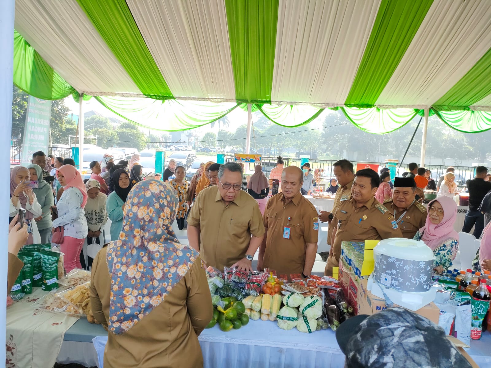 “Lebaran sudah dekat. Kebutuhan ibu-ibu untuk menyiapkan Idul Adha sudah mulai memborong kebutuhan pokok. Warga bisa datang mendapatkan harga sembako dan produk makanan dari UMKM di Tangsel,” kata Benyamin wartawan usai acara itu.