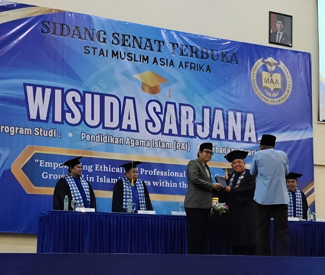 HARIANRAKYAT.ID, JAKARTA Prosesi wisuda Sarjana Sekolah Tinggi Agama Islam Muslim Asia Afrika yang berlangsung di Adia Suite UIN Jakarta, Ahad (11/1/2026), berlangsung khidmat.