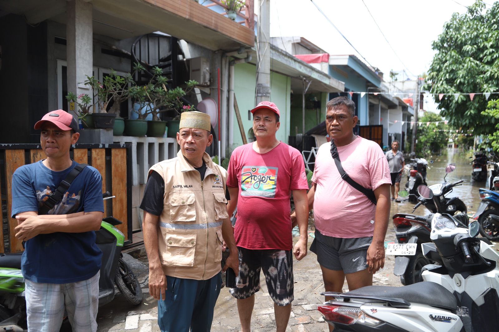 HARIANRAKYAT.ID- Anggota Dewan Perwakilan Rakyat Daerah (DPRD) Kota Tangerang Saiful Milah melakukan tinjauan langsung ke lokasi banjir, dampak jebolnya tanggul di Perumahan Garden City, Kelurahan Gebang Raya, Kecamatan Periuk, Kota Tangerang, Minggu (24/11/25).