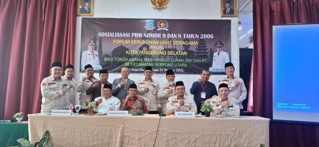 HARIANRAKYAT.ID, TANGSEL – Forum Kerukunan Umat Beragama (FKUB) Kota Tangsel menggelar kegiatan edukasi mengenai Peraturan Bersama Menteri (PBM) Nomor 9 dan 8 Tahun 2006. Aturan ini tentang pedoman pelaksanaan tugas kepala daerah dalam pemeliharaan kerukunan umat beragama serta pendirian rumah ibadah.