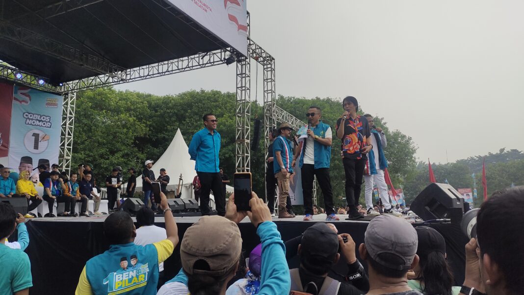 HARIANRAKYAT.ID, KOTA TANGSEL- Meski diguyur hujan lebat, massa kampanye pasangan calon nomor urut satu Benyamin Davnie – Pilar Saga Ichsan tak terbendung. Kampanye Akbar berlangsung di Taman Tekno 2, Setu Kota Tangsel, Sabtu (16/11/2024).