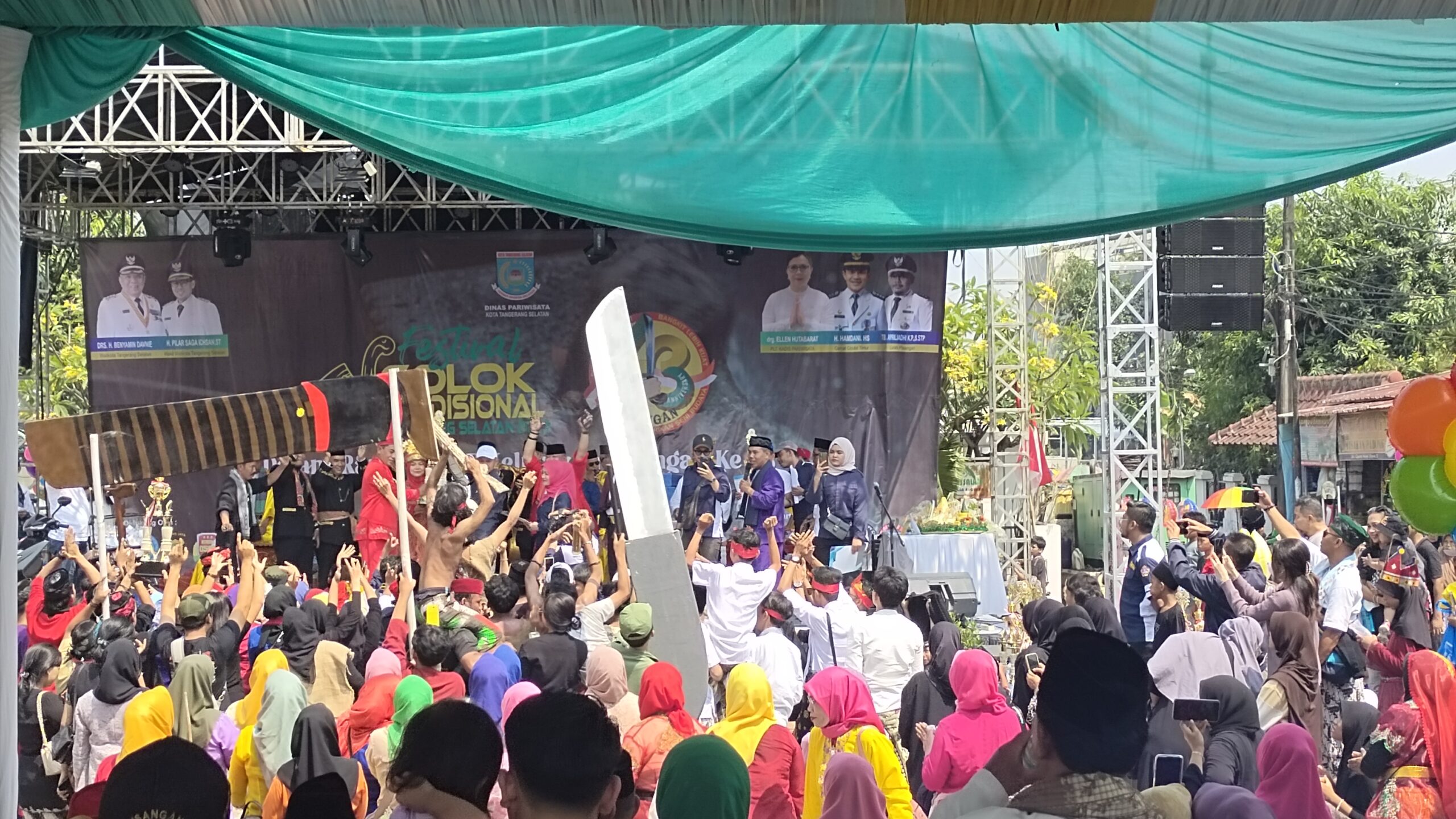 HARIANRAKYAT.ID, KOTA TANGSEL -Pesta Hari Ulang Tahun (HUT) Kelurahan Pisangan, Kecamatan Ciputat Timur Kota Tangsel yang ke 43 dihelat bersama Festival Golok berlangsung di Lapangan Ciputat Molek, Pisangan, Ciputra Timur. Sabtu (16/9/2023).