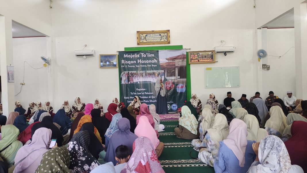 HARIANRAKYAT.ID, BOGOR-Ratusan jamaah tergabung dalam Badan Kontak Majelis Taklim (BKMT) Desa Tonjong memadati Masjid Rizqon Hasanah, Perumahan BCA, Tonjong, Tajurhalang, Kabupaten Bogor, Minggu (30/6/2024).