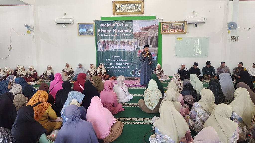 Pengajian tingkat Desa Tonjong secara bergilir di 12 RW. Kali ini sebagai tuan rumah, Majelis Taklim Risqon Hasanah RW 12 Perumahan BCA, bertajuk “Dengan Ukhuwah Islamiyah Kita Raih Manisnya Iman” disi oleh pendakwah Ustad Bayan Rahman pendiri Rumah Quran Desa Tajurhalang, Kabupaten Bogor.