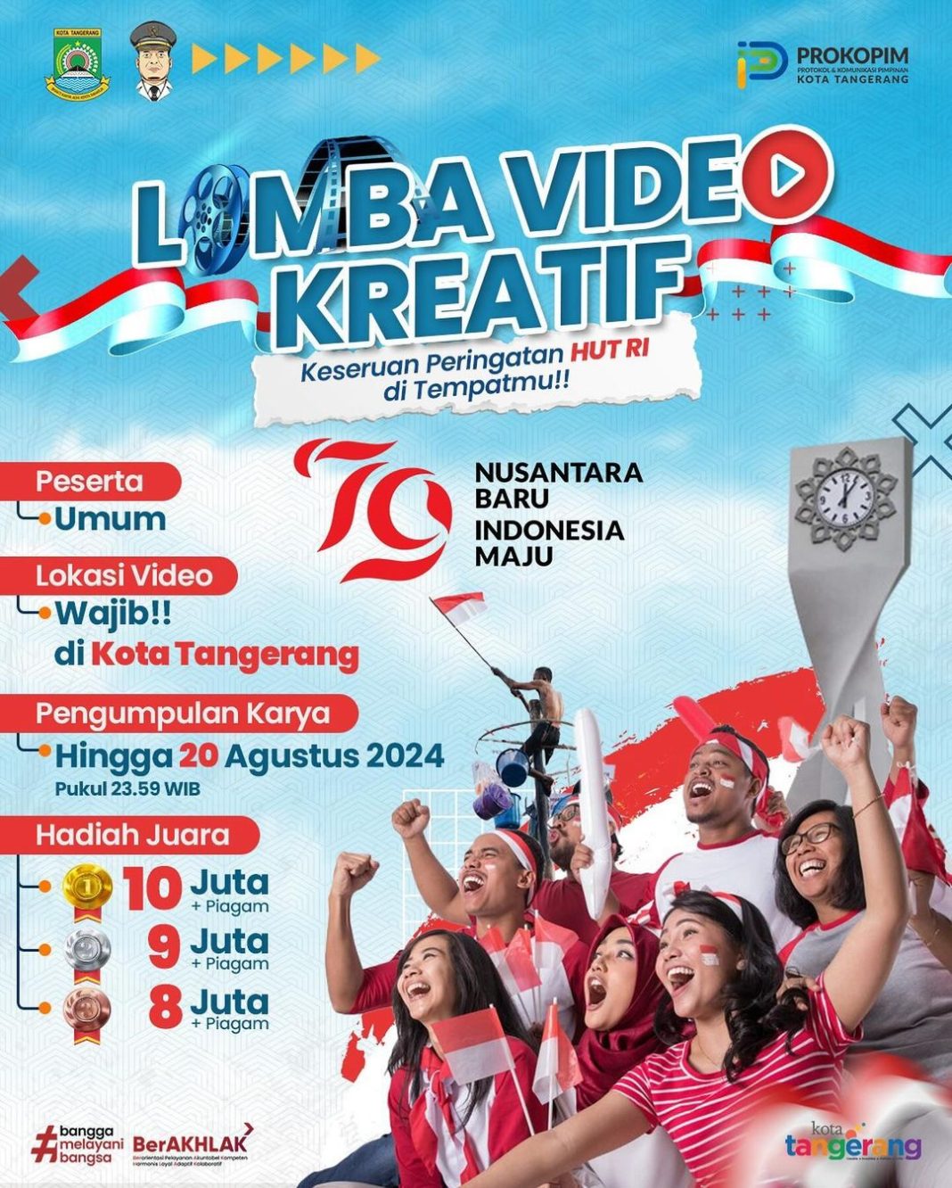 Kabag PROKOPIM Kota Tangerang Mualim menuturkan, lomba video kreatif ini digelar sebagai kegiatan positif dalam keseruan peringatan HUT ke-79 RI di Kota Tangerang. Lomba video ini terbuka untuk umum dan tidak hanya untuk warga Kota Tangerang, namun objek lokasi wajib di Kota Tangerang.