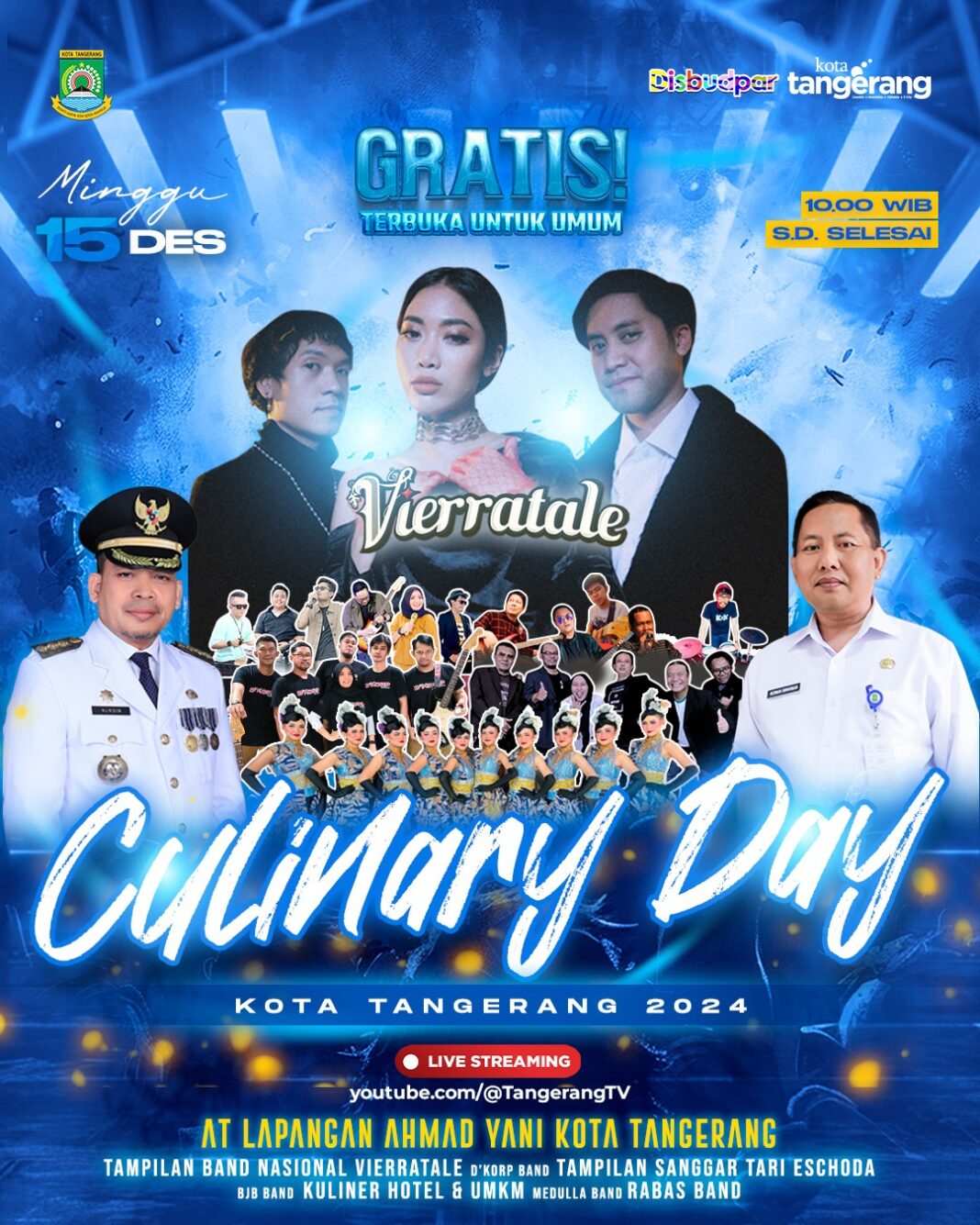 “Selain Vierratale, Culinary Day Kota Tangerang juga akan dimerihkan oleh D’Korps Band, tampilan Sanggar Tari Eschoda, BJB Band, Medulla Band hingga Rabas Band,” seru Rizal, Kamis (12/12/24).