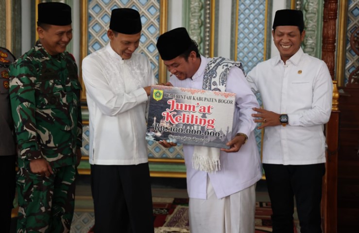 Wakil Bupati Bogor Jaro Ade menggelar Jum’at Keliling di Masjid Besar Al-Mukromin, Desa Cileuksa, Sukajaya, Jumat (6/2/2026). Selain ibadah, upaya untuk mendekatkan layanan dan menyerap aspirasi masyarakat.