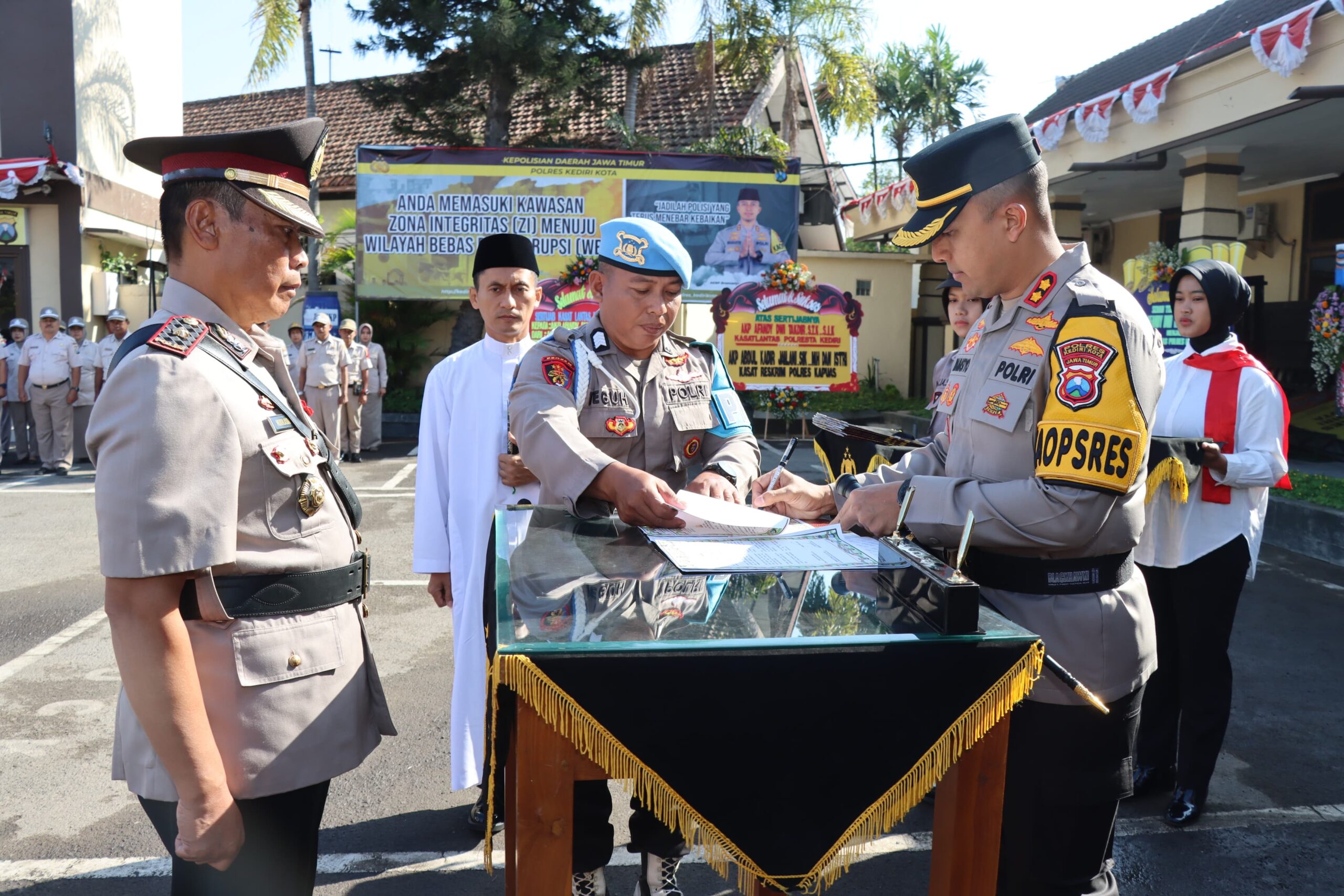 Sejumlah Pejabat Utama yang melakukan serah terima jabatan diantaranya Kabagops, Kabagren, Kasatlantas, Kasatbinmas, Kapolsek Mojoroto, Kapolsek Mojo serta pengukuhan Kasatsamapta dan Kapolsek Banyakan.