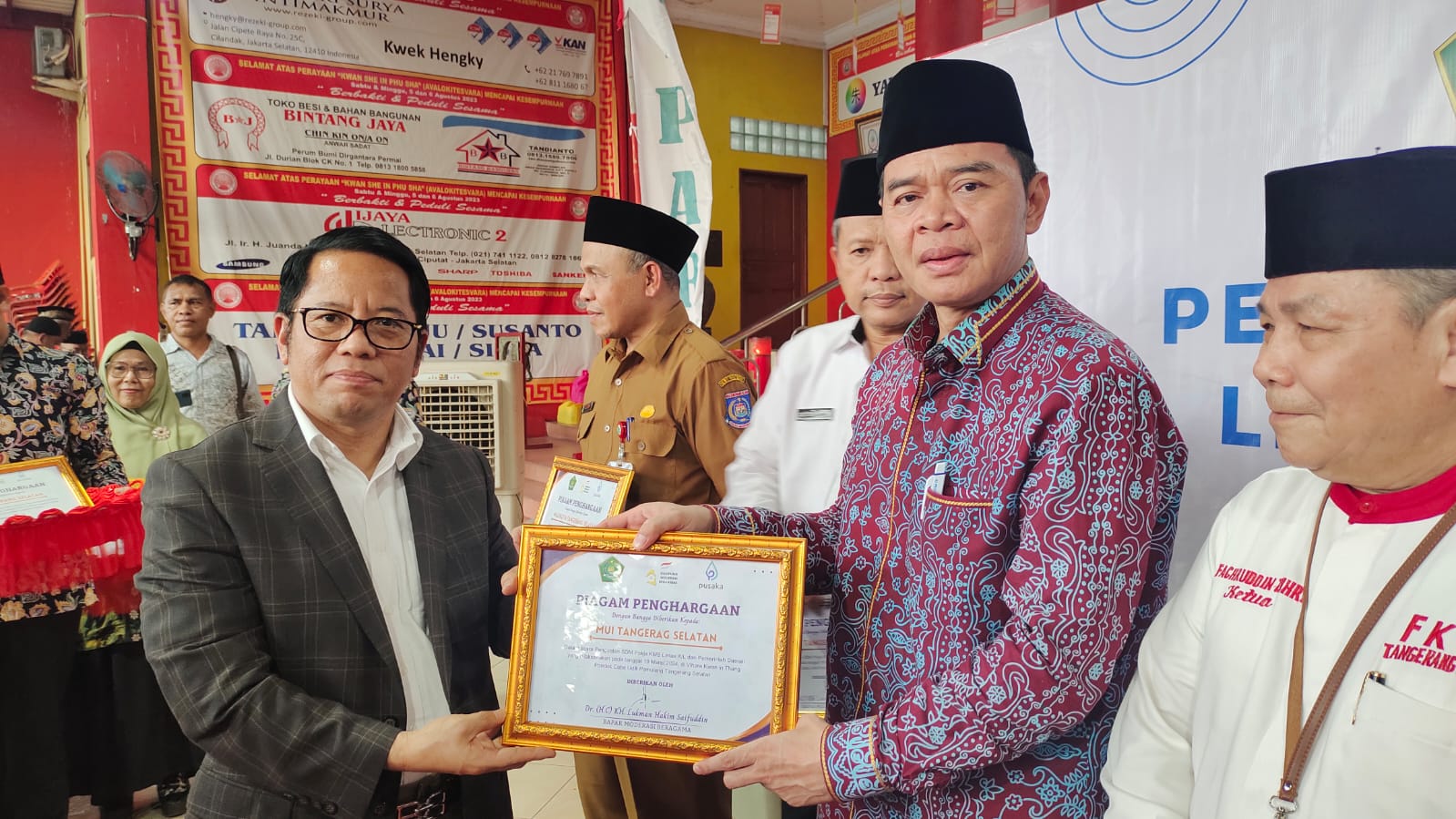 Sekum MUI Kota Tangsel Dr H Abdul Rojak membawa penghargaan atas kiprahnya sebagai ormas Islam MUI Kota Tangsel dalam menjaga kerukunan umat di Kota Tangsel selama ini.