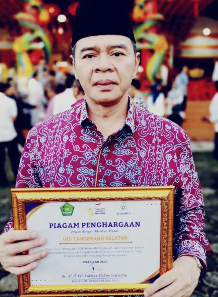 HARIANRAKYAT.ID, KOTA TANGSEL-MUI Kota Tangsel turut menerima penghargaan dalam mewujudkan kerukunan umat beragama di Kota Tangsel. Direktur Jenderal Bimbingan Masyarakat Islam (Dirjen Bimas Islam) Kementerian Agama RI, Dr. Phil Kamaruddin menyerahkan langsung di Vihara Kwan In Thang, Pondok Cabe Udik, Pamulang Kota Tangsel, Selasa (19/3/2024).