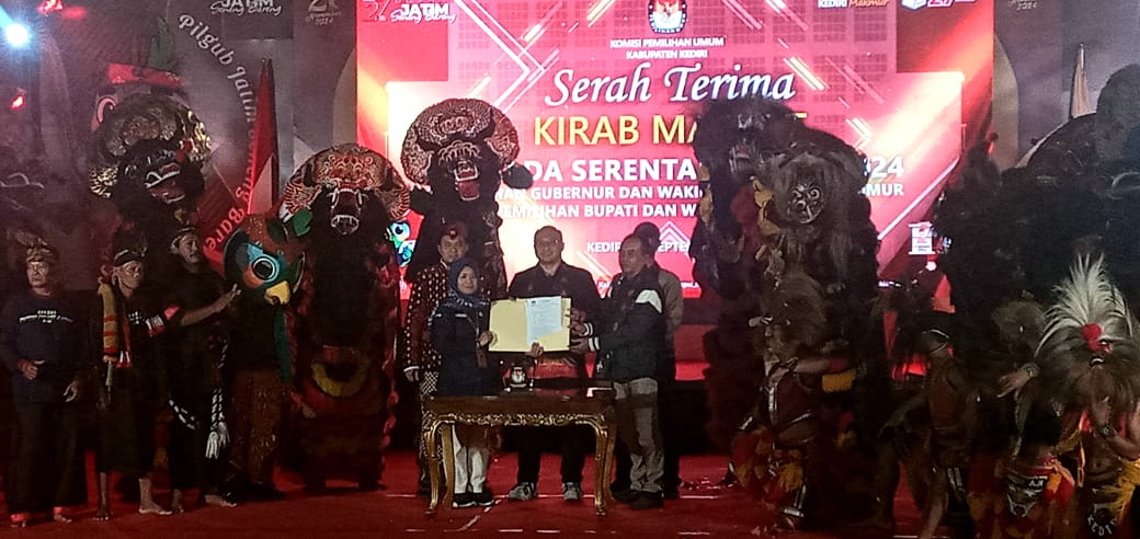 HARIANRAKYAT.ID, KABUPATEN KEDIRI- Komisi Pemilihan Umum (KPU) Kabupaten Kediri menggelar acara serah terima kirab Pilkada serentak tahun 2024 yang diselenggarakan di Simpang Lima Gumul (SLG), Selasa (24/9/2024).