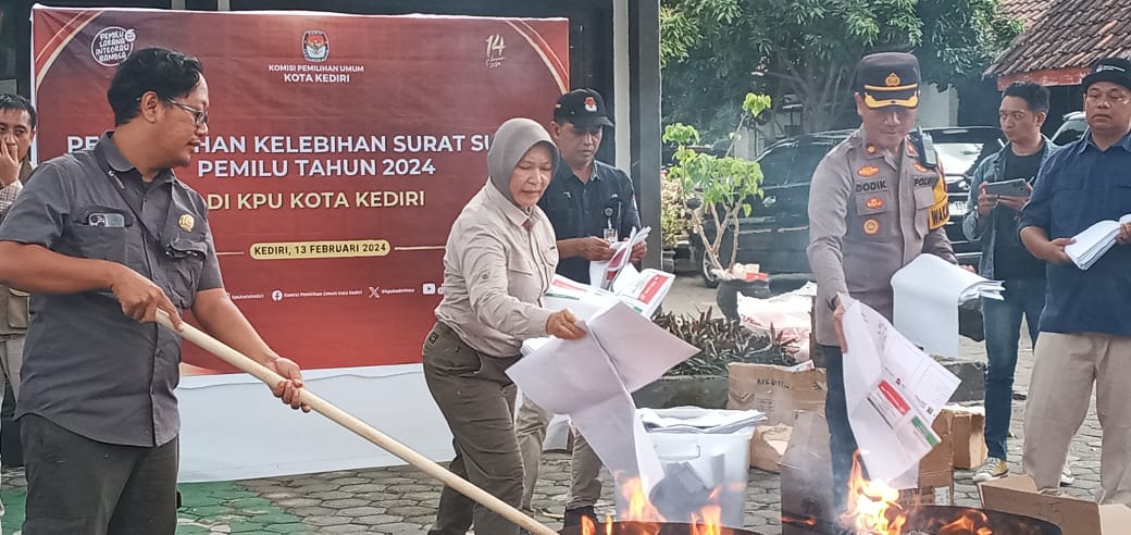 Ketua KPU Kota Kediri Pusporini Endah Palupi menjelaskan belasan ribu surat suara yang dibakar itu terdiri dari surat suara Presiden dan Wakil Presiden presiden 46 lembar. Surat suara anggota DPR sebanyak 315 lembar, surat suara anggota DPRD Provinsi sebanyak 1354 lembar.