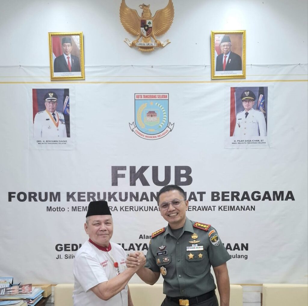 HARIANRAKYAT.ID, KOTA TANGSEL-Komandan KODIM 0506 Tangerang Kolonel Inf. Endik Hendra Sandi melakukan kunjungan ke kantor FKUB Kota Tangsel, di Jalan Siliwangi No 2 Pamulang Tangsel, Kamis (16/5/2024).