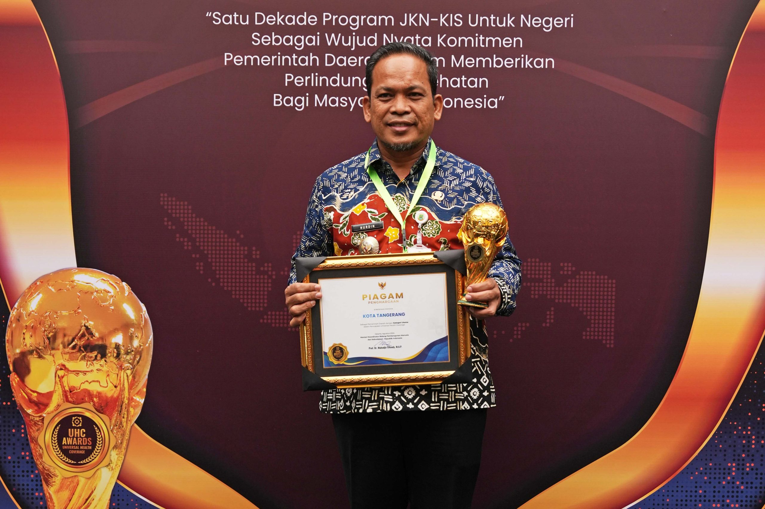 Atas dasar tersebutlah, Pemkot Tangerang diberikan Piagam Penghargaan Kategori Utama, yang diterima langsung oleh Penjabat (Pj) Wali Kota Tangerang, Dr. Nurdin, dalam acara UHC Awards 2024 yang digelar di Krakatau Grand Ball, Taman Mini Indonesia Indah (TMII), Kamis, (08/07).