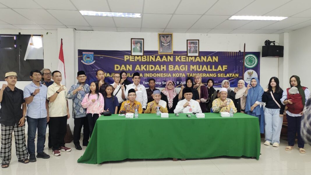 Hal ini disampaikan langsung oleh Ketua Muallaf Center MUI Kota Tangsel, KH Aep Saefudin, dalam acara “Pembinaan Keimanan dan Akidah bagi Muallaf” yang dihadiri Ketua Umum MUI Kota Tangsel KH Saidih, Staf Ahli Bidang Kemasyarakatan dan SDM Heli Slamet, Wakil Ketua MUI Tangsel KH Hasan Mustofi, Komisioner Baznas Tangsel Dr Taufik Setyaudin dan Ketua Infokom MUI Tangsel H Azharul Fuad, digelar di Gedung Kelembagaan MUI Kota Tangsel, Pamulang, Rabu (9/7/2025).