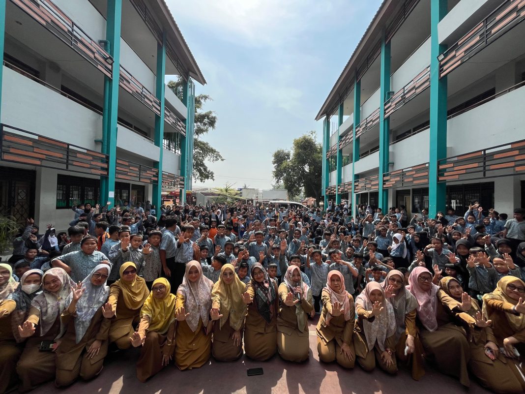 Aksi yang dilakukan oleh Dinas Pemberdayaan Perempuan Perlindungan Anak, Pengendalian Penduduk dan Keluarga Berencana (DP3AP2KB) Kota Tangerang Selatan melibatkan siswa siswi serta para guru berjumlah 794 di SDN Ciater 02 Serpong Kota Tangsel, Selasa (8/10/2024).