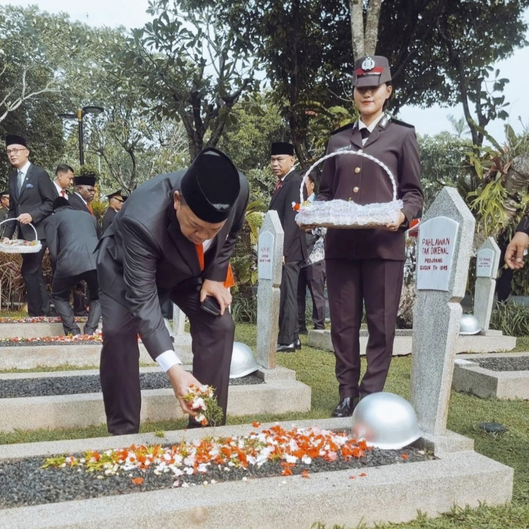 Usai upacara, Wakil Presiden RI Gibran Rakabuming Raka beserta sejumlah tokoh yang hadir termasuk Menteri Nusron melakukan ziarah dan tabur bunga ke sejumlah makam pahlawan Indonesia yang disemayamkan di TMP Kalibata.