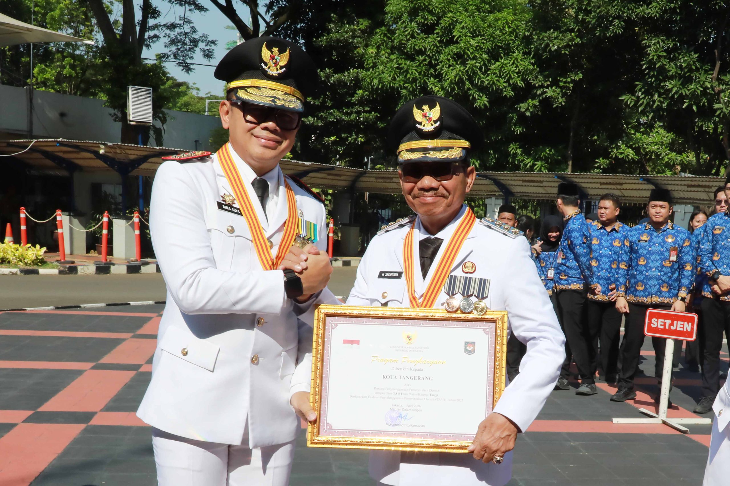 Penghargaan tersebut diterima langsung oleh Wali Kota Tangerang, Sachrudin, pada peringatan Hari Otonomi Daerah yang digelar di Kantor Kementerian Dalam Negeri RI, Senin (27/04/2026). Capaian ini menjadi bukti nyata komitmen pemerintah daerah dalam mengimplementasikan Otda yang berdampak langsung bagi masyarakat.