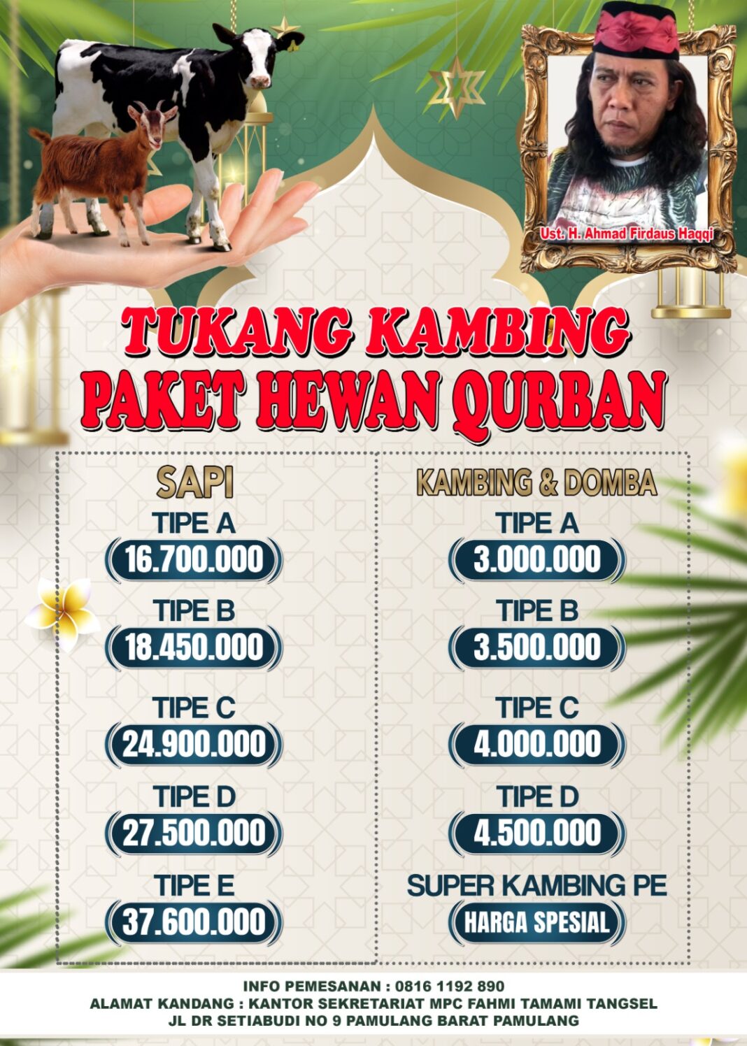 HARIANRAKYAT.ID TANGSEL -Tak lama lagi, umat Islam merakayan Idul Adha 1446 H. Jangan bingung untuk memilih hewan kurban berkualitas, kini Majelis Pimpinan Cabang (MPC) Fahmi Tamami Tangerang Selatan menyediakan berbagai pilihan.