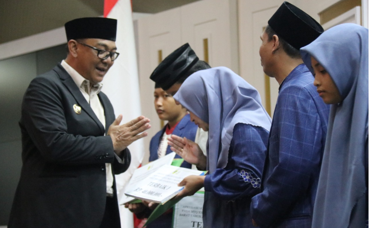 PEMKAB BOGOR-Plt. Bupati Bogor, Iwan Setiawan memberikan Apresiasi Kadeudeuh kepada peserta berprestasi pada MTQ XXXVII Tingkat Provinsi Jawa Barat Tahun 2022. Berlangsung di Gedung Serbaguna 1 Setda, Cibinong Selasa 6 September 2022.