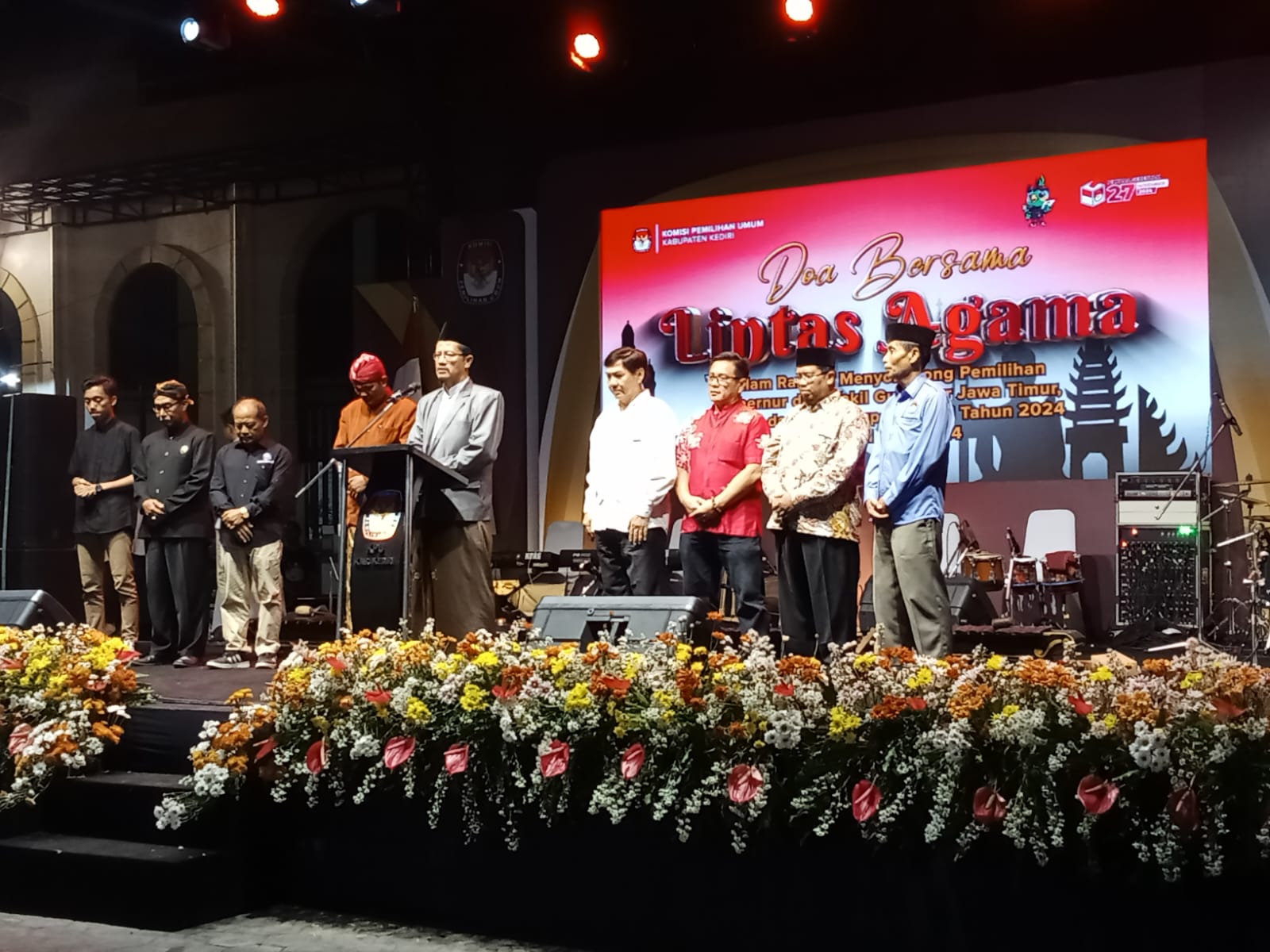 HARIANRAKYAT.ID, KABUPATEN KEDIRI-Komisi Pemilihan Umum (KPU) Kabupaten Kediri menggelar doa bersama lintas agama. Bertajuk “Menyongsong Pemilihan Gubernur dan Wakil Gubernur Jawa Timur, Bupati dan Wakil Bupati Kediri Tahun 2024”. Berlangsung di halaman Kantor KPU Kabupaten Kediri, Selasa (11/6/2024) malam.