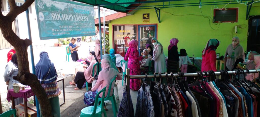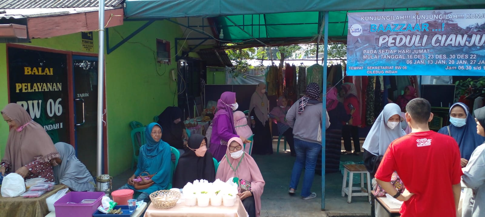 KOTA TANGERANG-Kantor Sekretariat RW 06 Ciledug Indah 1, Kelurahan Pedurenan, Kecamatan Karang Tengah, Kota Tangerang, ramai dikunjungi warga sekitar, tua muda, pria dan wanita. Mereka berburu barang bekas layak pakai yang dijual dengan harga sepantasnya dalam bazaar Peduli Cianjur.