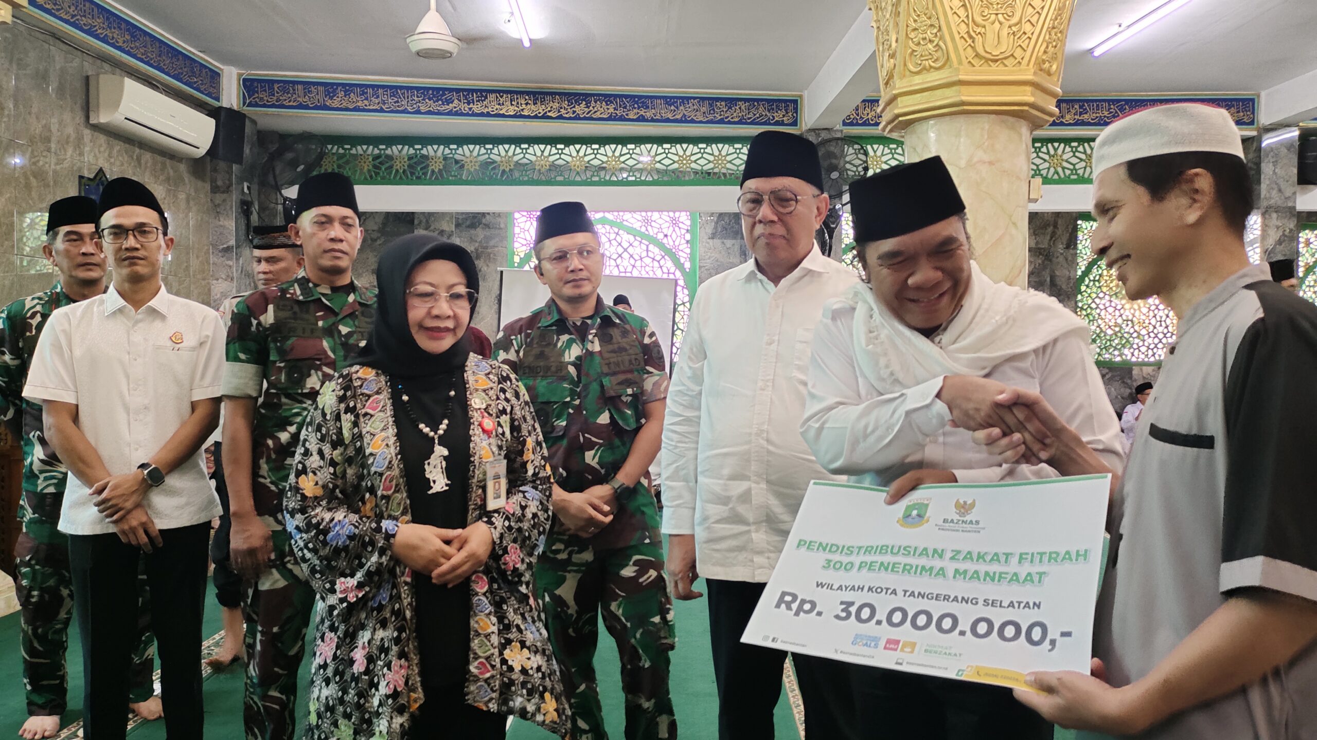 Pada acara itu juga Almuktabar bersama Wali Kota Tangsel Benyamin Davnie memberikan bingkisan sarung dan sembako pada pengurus masjid dan yatim piatu bersama Baznas Kota Tangsel dan Provinsi Banten.