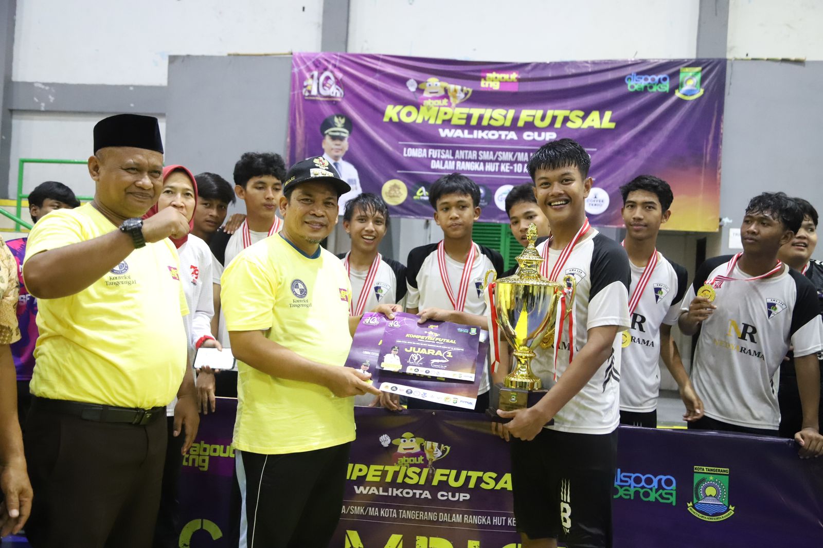 HARIANRAKYAT.ID- Kota Tangerang sebagai sport city yang terus mengedepankan filosofi sportainment sekaligus sport tourism, seolah tak berhenti menghadirkan event-event olahraga berkelas bagi masyarakatnya. Terbaru, Pemerintah Kota (Pemkot) Tangerang melalui Dinas Pemuda dan Olahraga (Dispora) bekerja sama dengan salah satu media lokal ternama di Tangerang Raya, abouttng, menggelar Kompetisi Futsal Wali Kota Cup yang diikuti oleh 16 peserta dari SMA/SMK/MAN se-Kota Tangerang.