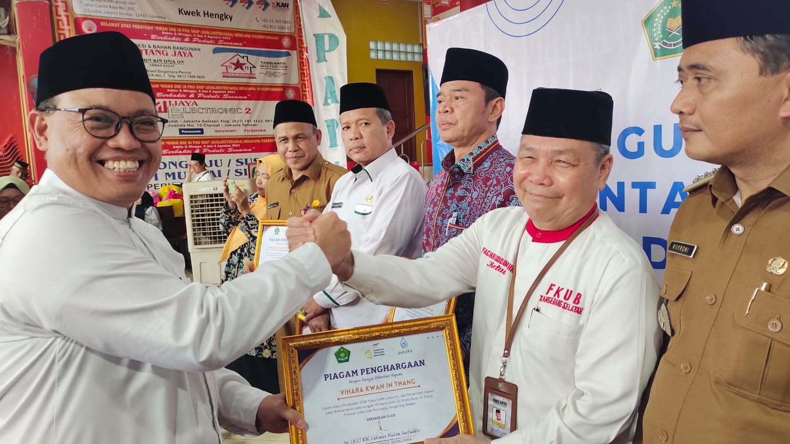 Penghargaan diserahkan di Vihara Kwan In Thang, Pondok Cabe Udik, Pamulang Kota Tangsel, Selasa (19/3/2024).