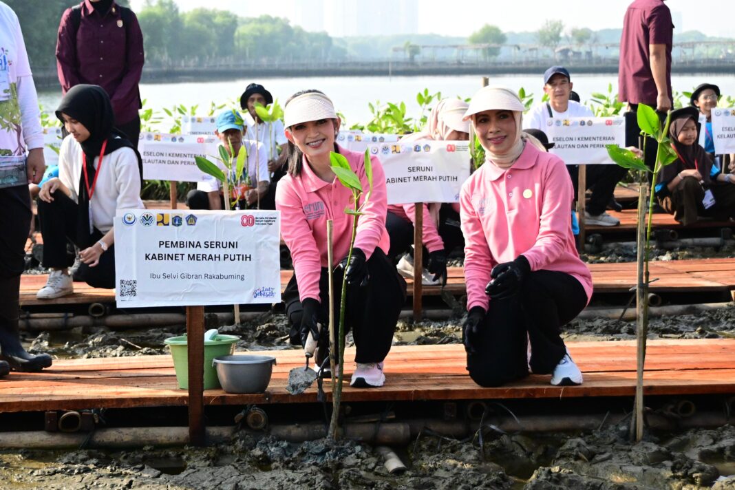 Selvi Gibran Rakabuming bersama anggota Solidaritas Perempuan untuk Indonesia (Seruni) Era Kabinet Merah Putih menghadiri Kick Off “Laut Sehat Bebas Sampah (Laut Sebasah)”. Sekaligus Groundbreaking Pengembangan Kawasan Mangrove Nasional yang merupakan rangkaian dari peringatan Bulan Cinta Laut, di Kamal Muara, Penjaringan, Kota Jakarta Utara, Rabu (06/08/2025).