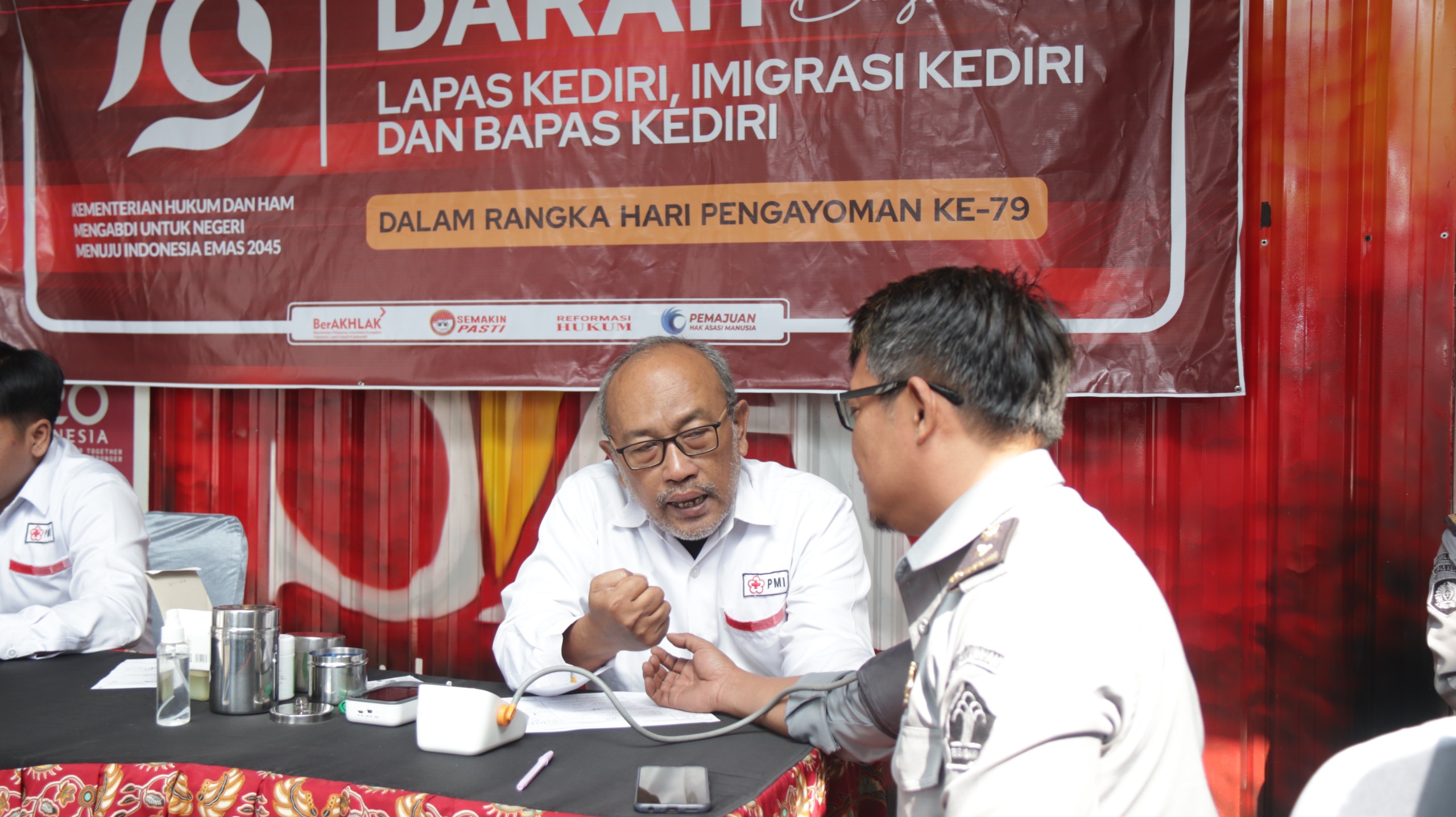 HARIANRAKYAT.ID, KOTA KEDIRI- Memperingati Hari Pengayoman ke-79, Klinik Pratama Lapas Kediri kembali mengadakan donor darah. Bekerja sama dengan Palang Merah Indonesia (PMI) Kota Kediri, Rabu (31/7/2024).
