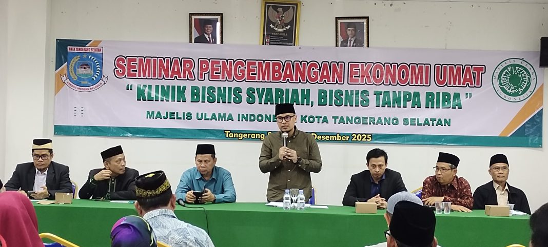 Wakil Wali Kota Tangsel, Pilar Saga Ichsan, saat memberi materi dalam Seminar Pengembangan Ekonomi Umat, Klinik Bisnis Syariah, Bisnis Tanpa Riba yang digelar MUI Kota Tangsel, Rabu (10/12/2025), menegaskan bahwa grafik pertumbuhan ekonomi daerah akan terus merangkak naik.