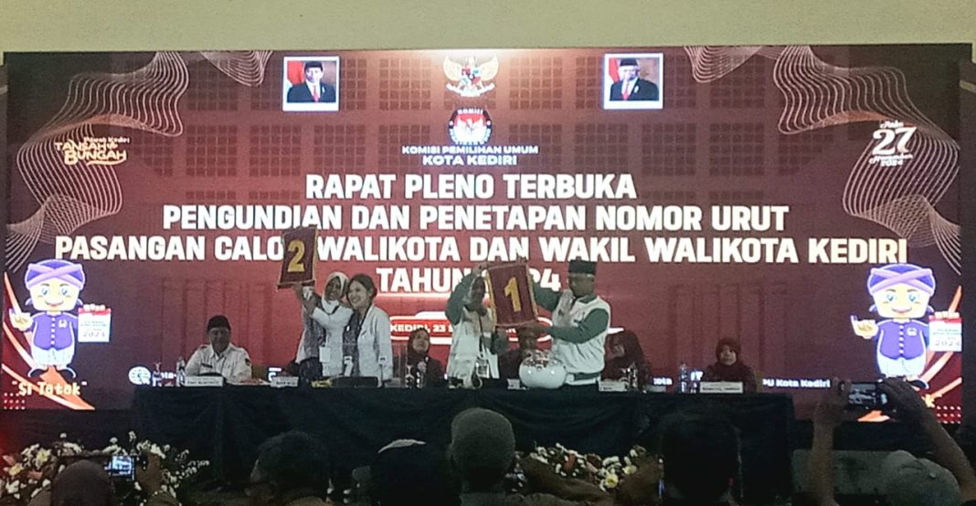 HARIANRAKYAT.ID, KOTA KEDIRI- Pasangan calon Walikota dan Wakil Walikota Kedir, Vinanda Prameswati–Gus Qowimudin Thoha mendapatkan nomor urut 1. Sedangkan Ferry Silviana–Regina Suwono mendapatkan nomor urut 2.