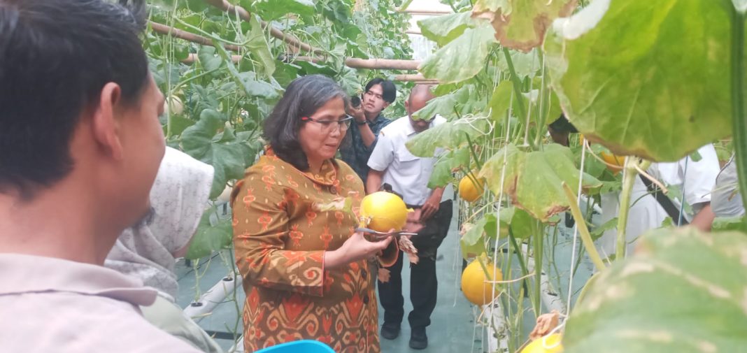 “Jadi intinya masyarakat kita ajak untuk memanfaatkan lahan pekarangan secara optimal dengan menggunakan teknologi yang ada. Salah satunya adalah seperti contohnya adalah budidaya tanaman melon melalui hidroponik,” imbuhnya.