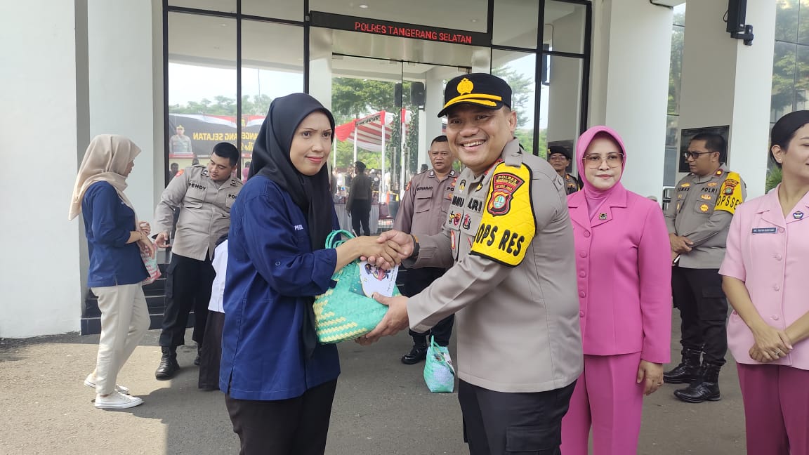 Setiap polsek di Kota Tangerang Selatan mendapat jatah 100 data penerima dari 1000 paket yang dibagikan tersebut.
