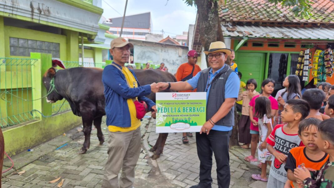 HARIANRAKYAT.ID, TANGERANG – PT Indah Kiat Pulp and Paper Tbk (IKPP) Tangerang menunjukkan kepeduliannya kepada masyarakat sekitar dengan menyalurkan 9 ekor sapi dan 17 ekor kambing pada perayaan Idul Adha 1445 Hijriah/2025. Hewan kurban ini dibagikan sebagai bagian dari program tanggung jawab sosial perusahaan (CSR).