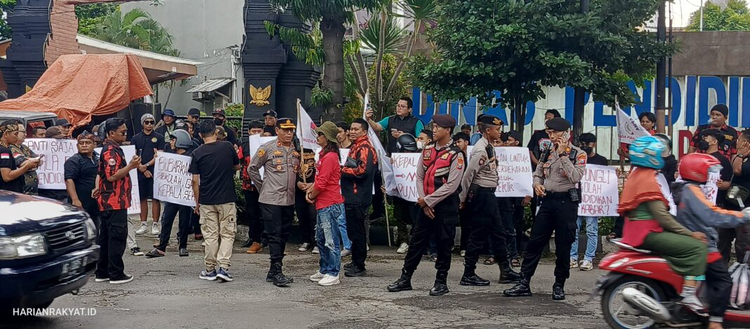 HARIANRAKYAT.ID, KOTA KEDIRI – Puluhan massa dari enam Lembaga Swadaya Masyarakat (LSM) menggelar aksi damai di Kantor Dinas Pendidikan Kota Kediri, Kamis (30/1/2025).