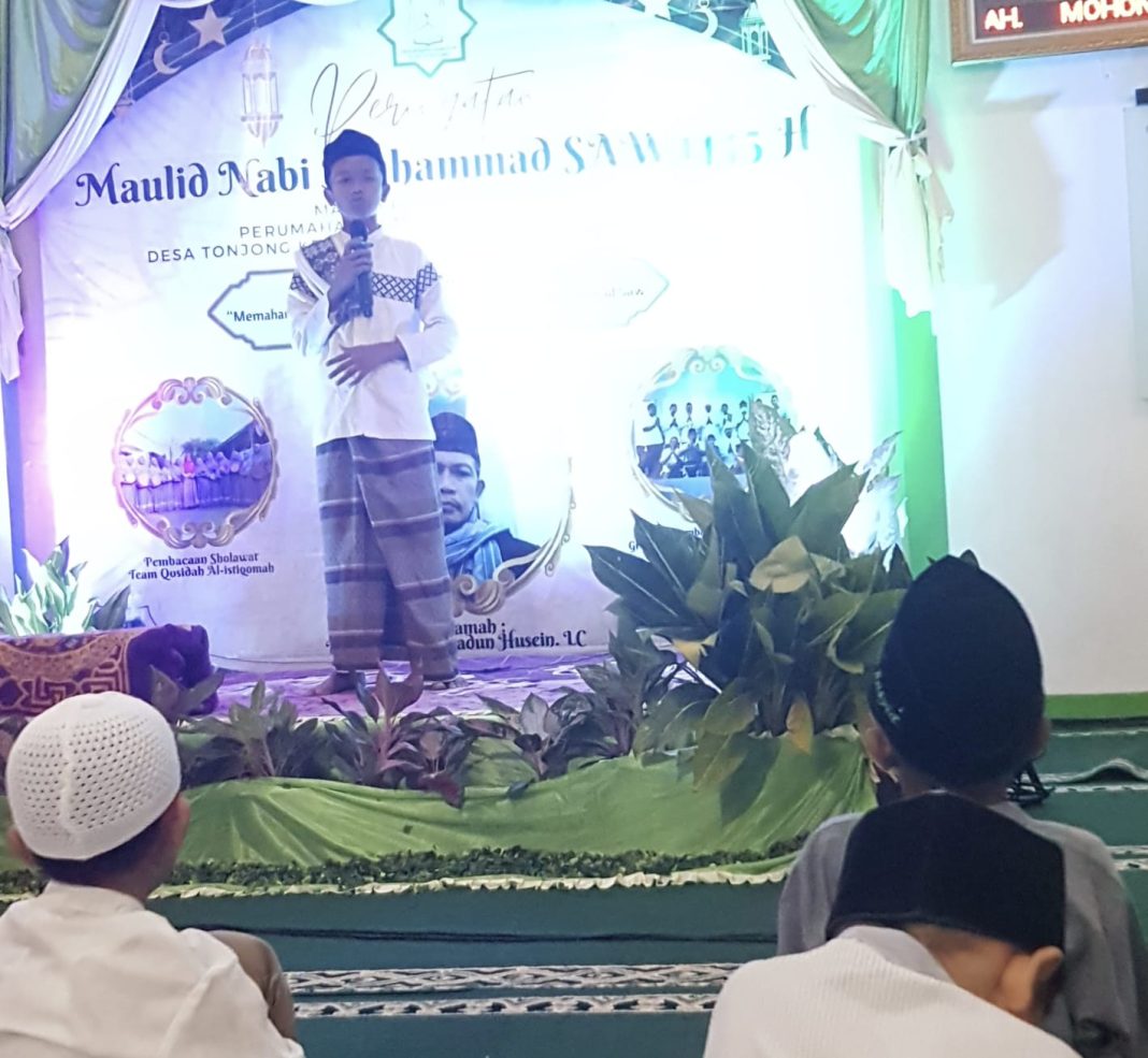 Perwakilan Desa Tonjong, selaku Amil wilayah Dusun Dua, Ustadz Eka Purnama mengajak di malam yang mulia ini bersama-sama memuliakan kelahiran Nabi Muhammad SAW, Nabi yang amat agung budi pekertinya.  Tingkatkan keimanan dan ketakwaan kepada Allah serta tingkatkan mahabbah kepada Nabi Muhammad SAW.