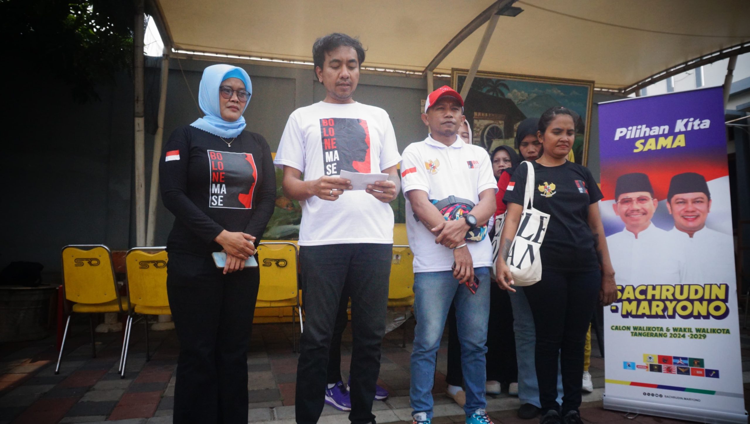 HARIANRAKYAT.ID- Relawan Gibran Rakabuming Raka yang tergabung dalam Bolone Mase Kota Tangerang mendeklarasikan dukungannya terhadap pasangan bakal calon Wali Kota dan Wakil Wali Kota Tangerang, Sachrudin-Maryono Hasan.