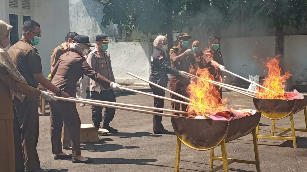 “Pemusnahan barang bukti dengan cara di bakar, digerinda, dilarutkan dalam air dan dihancurkan sampai tidak dapat digunakan,” ujarnya.