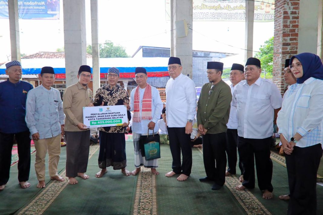 SERPONG UTARA- Wali Kota Tangerang Selatan, Benyamin Davnie melalui Safari Ramadan 1447 Hijriah menyalurkan bantuan kepada imam masjid, marbot, dan guru ngaji se-Kota Tangerang Selatan. Bantuan itu sebesar Rp405 juta