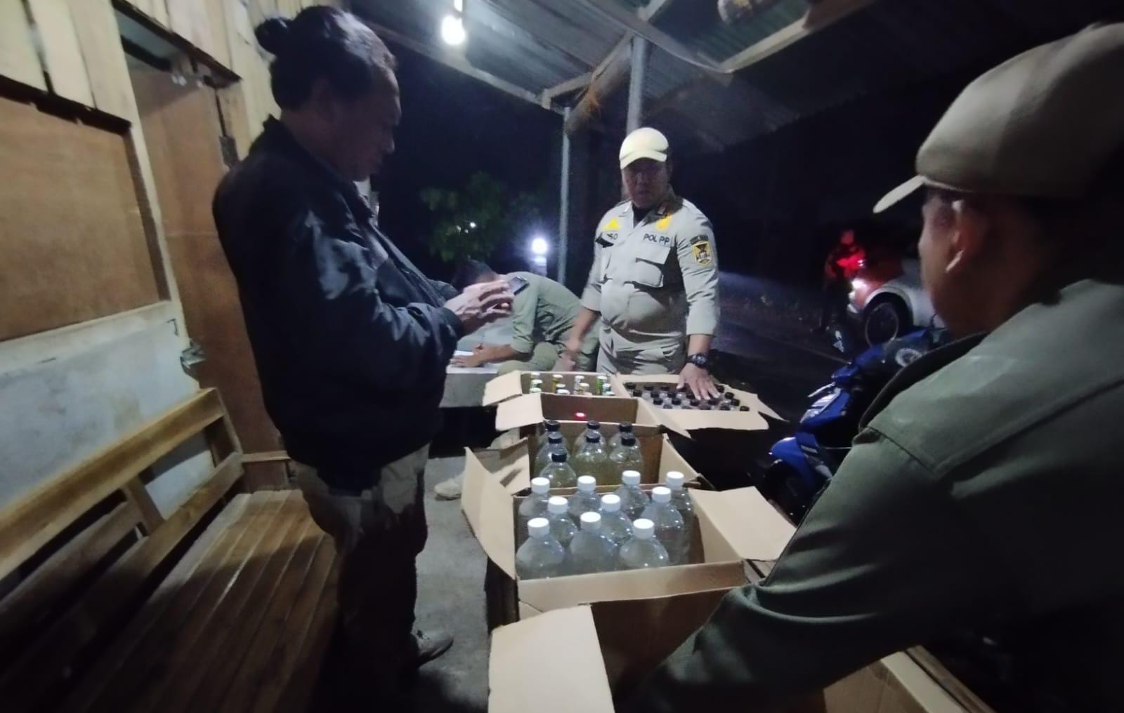 Miras yang berjumlah 100 botol lebih itu, kini diamankan di Kantor Satpol PP Kota Kediri.