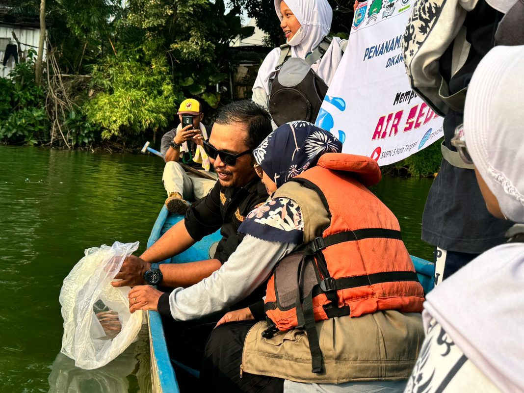 HARIANRAKYAT.ID, KOTA TANGSEL-Tim Adiwiyata SMPN 5 Tangsel menebar bibit ikan di Kawasan Situ 7 Muara, Kelurahan Pamulang Barat, Pamulang Kota Tangsel serta tanam pohon di bantaran setu. Dilakukan pada Jumat (21/6/2024).