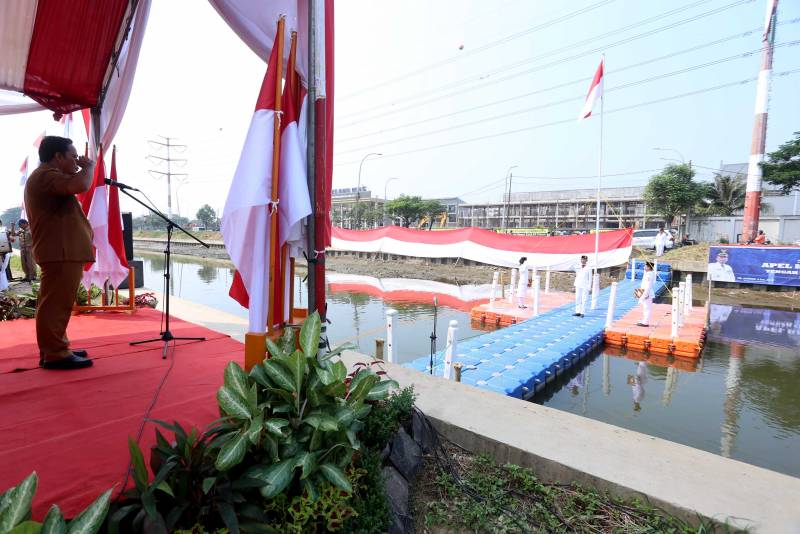 HARIANRAKYAT.ID- Dalam rangka memperingati Hari Sumpah Pemuda (HSP) ke-96, Penjabat (Pj) Wali Kota Tangerang Dr. Nurdin, memimpin upacara Bendera di tengah Saluran Sungai Cisadane Barat, bersama dengan Koalisi Aktivis Lingkungan Hidup Tangerang (Kalung), Senin (28/10).